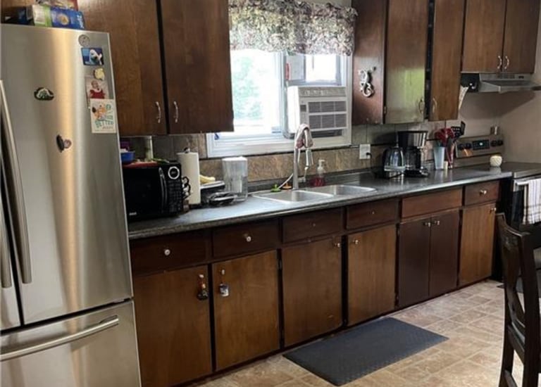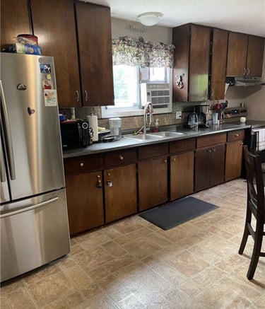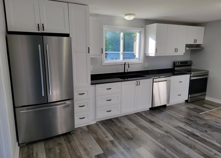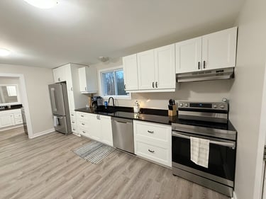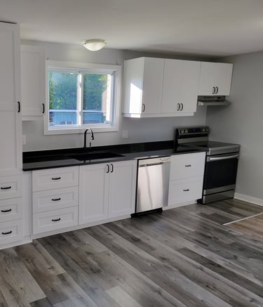 From outdated to updated! Sleek cabinets, fresh paint and new flooring.